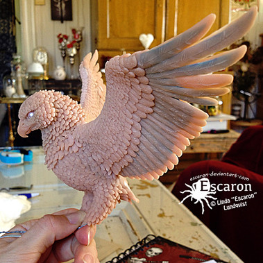A little bird I carved out of a piece of plaster of paris. I set the block in a paper cup, so it's just under two inches in diameter. It's definitely not finished yet...I plan to paint it when it's done.Carving is addictive - chip, chip, scrape, scrape....@.@