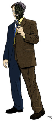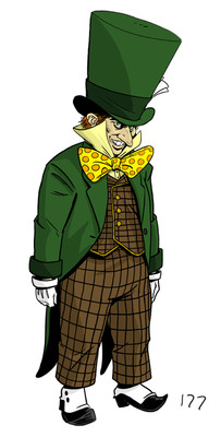 Other than the sneakers (which doesn't quite work for me with the dapper image he presents), I really like this. Your portrayal of him face-wise is about spot-on as ~Tailbone says too many draw him excessively young when I'd say he's at least in his mid thirties at the very youngest. Still not sure about the yellow shirt but I like how the trousers and waistcoat are an inbetween stage between the two canon versions of his trousers we tend to see: black and purple.