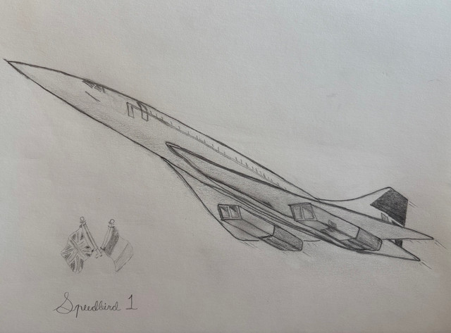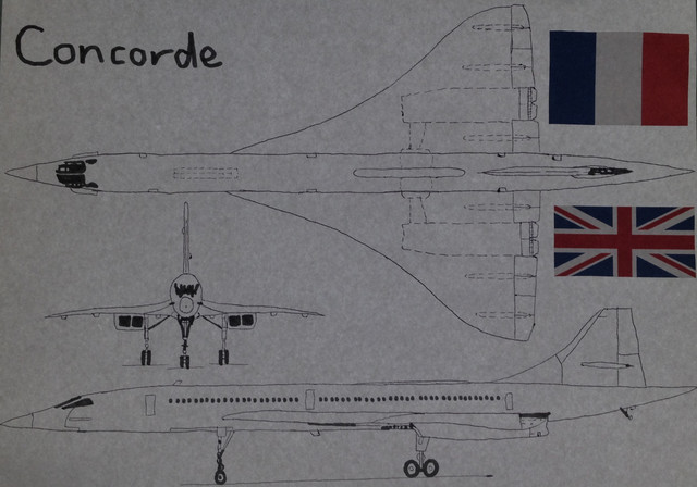 This is another drawing of another 20th Century icon, Concorde. For 30 years, Concorde provided the worlds first and only supersonic passenger service between England, France and America with only one accident. They were retired in 2002 for being too expensive to run for their airlines. It's shape is unique in passenger aviation. If only they still flew...Related content