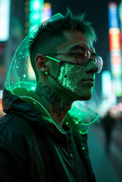 #cyberpunk #neon #masked #digitalghost #scificharacter #cyberpunkart #cyberspirit #futuristicportrait #glitchaesthetic #urbanfantasyart #holographicfashion #neondreamscape #neonwraiths