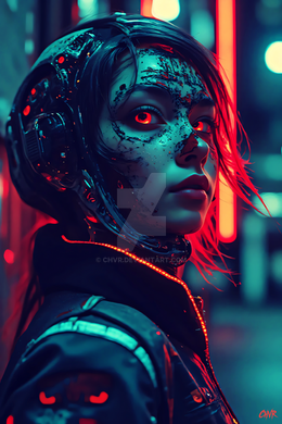 #digitalart #scifi #cyberpunk #cyborg #digitalghost #scificharacter #cyberpunkart #cyberspirit #futuristicportrait #glitchaesthetic #urbanfantasyart #holographicfashion #neondreamscape #neonwraiths