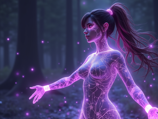 #digitalart #beauty #magic #digitalghost #scificharacter #cyberpunkart #cyberspirit #futuristicportrait #glitchaesthetic #urbanfantasyart #holographicfashion #neondreamscape #neonwraiths