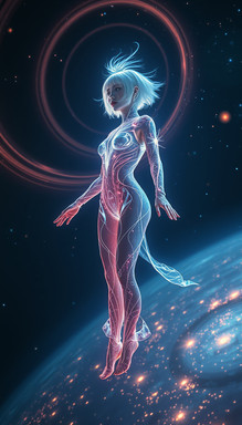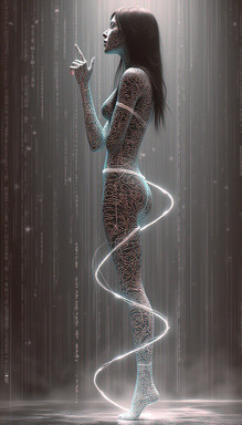#digitalghost #scificharacter #cyberpunkart #cyberspirit #futuristicportrait #glitchaesthetic #urbanfantasyart #holographicfashion #neondreamscape #neonwraiths
