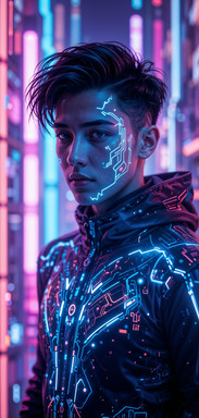 #digitalghost #scificharacter #cyberpunkart #cyberspirit #futuristicportrait #glitchaesthetic #urbanfantasyart #holographicfashion #neondreamscape #neonwraiths