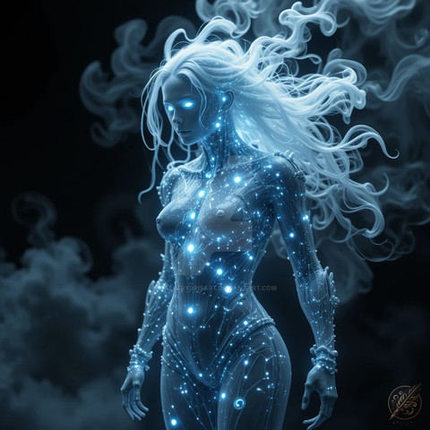 #digitalart #beauty #magic #fantasyart #digitalghost #scificharacter #cyberpunkart #cyberspirit #futuristicportrait #glitchaesthetic #urbanfantasyart #holographicfashion #neondreamscape #neonwraiths