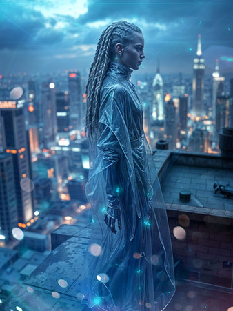 #cyberpunk #neon #digitalghost #scificharacter #cyberpunkart #cyberspirit #futuristicportrait #glitchaesthetic #urbanfantasyart #holographicfashion #neondreamscape #neonwraiths