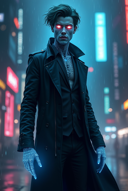 #cyberpunk #digitalghost #scificharacter #cyberpunkart #cyberspirit #futuristicportrait #glitchaesthetic #urbanfantasyart #holographicfashion #neondreamscape #neonwraiths