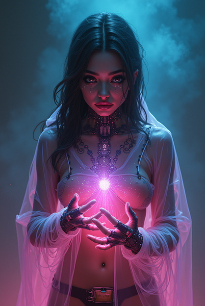 #digitalart #portrait #beauty #magic #fantasyart #digitalghost #scificharacter #cyberpunkart #cyberspirit #futuristicportrait #glitchaesthetic #urbanfantasyart #holographicfashion #neondreamscape #neonwraiths