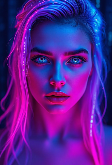 #portrait #photography #beauty #digitalghost #scificharacter #cyberpunkart #cyberspirit #futuristicportrait #glitchaesthetic #urbanfantasyart #holographicfashion #neondreamscape #neonwraiths