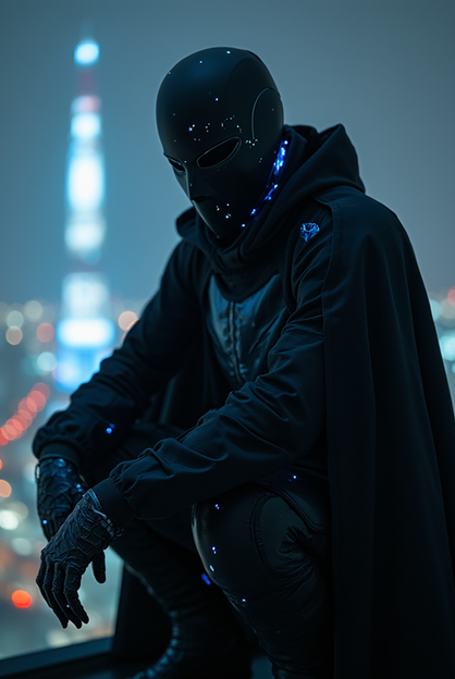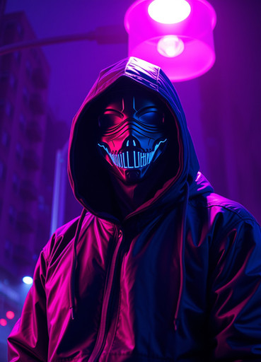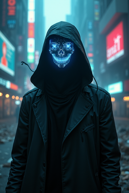 #cyberpunk #masked #digitalghost #scificharacter #cyberpunkart #cyberspirit #futuristicportrait #glitchaesthetic #urbanfantasyart #holographicfashion #neondreamscape #neonwraiths