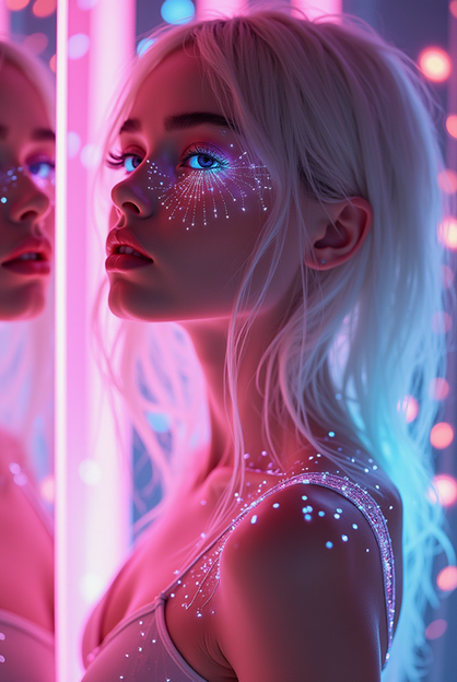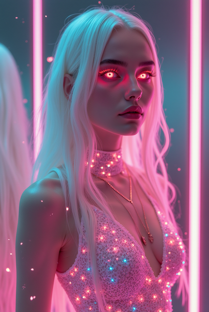 #portrait #photography #beauty #digitalghost #scificharacter #cyberpunkart #cyberspirit #futuristicportrait #glitchaesthetic #urbanfantasyart #holographicfashion #neondreamscape #neonwraiths