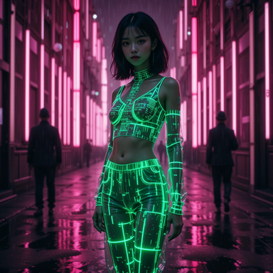 #digitalart #cyberpunk #neon #digitalghost #scificharacter #cyberpunkart #cyberspirit #futuristicportrait #glitchaesthetic #urbanfantasyart #holographicfashion #neondreamscape #neonwraiths