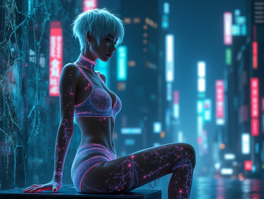 #beauty #cyberpunk #neon #cityscape #digitalghost #scificharacter #cyberpunkart #cyberspirit #futuristicportrait #glitchaesthetic #urbanfantasyart #holographicfashion #neondreamscape #neonwraiths