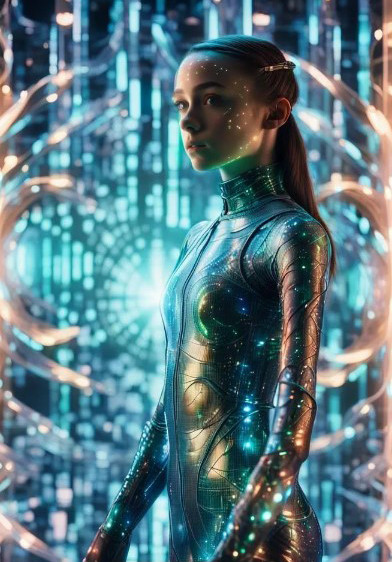 #beauty #cyberpunk #digitalghost #scificharacter #cyberpunkart #cyberspirit #futuristicportrait #glitchaesthetic #urbanfantasyart #holographicfashion #neondreamscape #neonwraiths