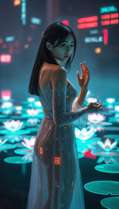 #neon #digitalghost #scificharacter #cyberpunkart #cyberspirit #futuristicportrait #glitchaesthetic #urbanfantasyart #holographicfashion #neondreamscape #neonwraiths