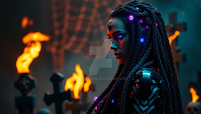 #warrior #cyberpunk #digitalghost #scificharacter #cyberpunkart #cyberspirit #futuristicportrait #glitchaesthetic #urbanfantasyart #holographicfashion #neondreamscape #neonwraiths