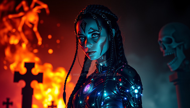 #digitalghost #scificharacter #cyberpunkart #cyberspirit #futuristicportrait #glitchaesthetic #urbanfantasyart #holographicfashion #neondreamscape #neonwraiths