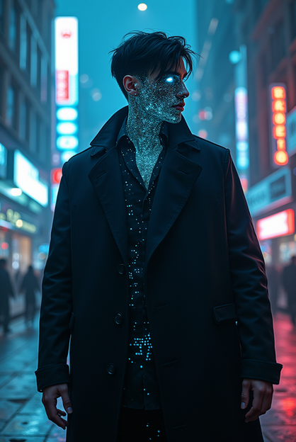 #digitalghost #scificharacter #cyberpunkart #cyberspirit #futuristicportrait #glitchaesthetic #urbanfantasyart #holographicfashion #neondreamscape #neonwraiths