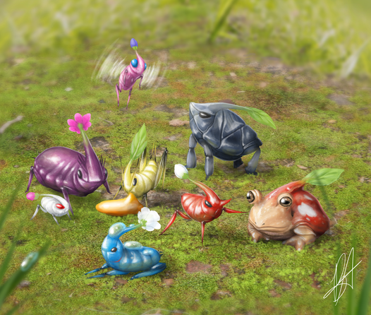 #bulborb #nintendo #pikmin2 #arachnorb #antennabeetle #pikminfanart #white_pikmin #red_bulborb #burrowing_snagret #pikminspecies #purple_pikimin #beady_long_legs #beetle #pikmin