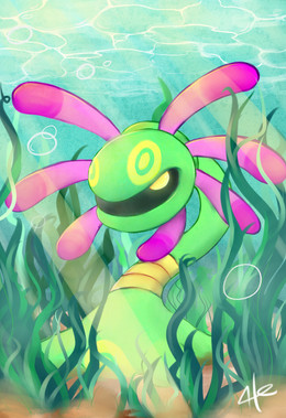 Cradily is quite the monstrosity, yet one of the more colourful Fossil Pokemon. I hope you like this piece