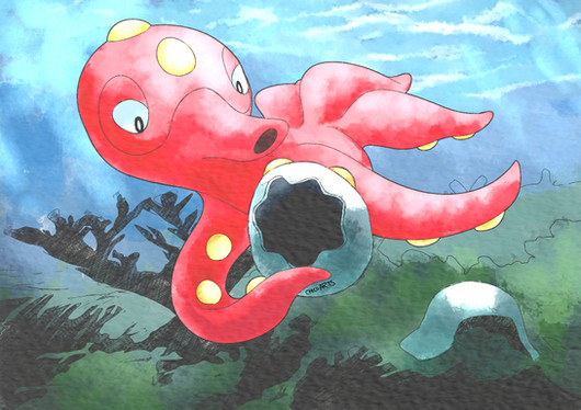 Here's another entry which I became rather fond of while doing a little research on them. Entry #33 is the first Fossil Pokémon in the Scrapbook, I remember feeling a bit unnerved when first coming across Cradily, its design is just so alien compared to the other fossil Pokémon. The tide is out where Cradily can be seen hunting, it has come across a rock pool when its prey has been waterlogged for easy pickings. Also, that's two lily themed Pokémon in a row, honestly a coincidence. Working on rock texture again with this piece, I painted the foreground rocks just the same and then I used a soft blur brush to try and create an 'out of focus' effect, fleshing out of the scene while keeping the attention towards Cradily.If you'd like, you can check out the Pokemon Scrapbook where you can find all of the Poke Pieces I've created so far! Plenty more to come!