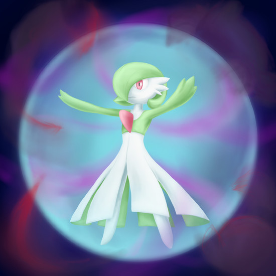 There we go, turned this around in good time. Entry #122 is fixated on something familiar, a strange exercise for Kirlia. Had this idea a while back, far simpler in concept that other pieces I've put together in the past. I have a bad habit of overengineering backgrounds. I avoided deeper shades with Kirlia itself to accentuate its gentle, ballerina like demeanor.