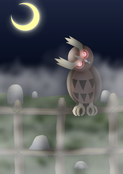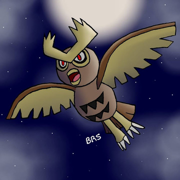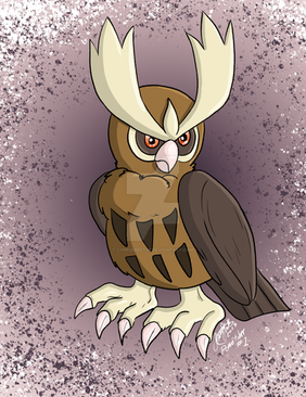 The OG Owl is a classic rep for Johto, Noctowl takes entry #53 and the 2nd place in the 'Frosty Scrapbook Month'. The original vision I had for this was far too similar to Gogoat (the scene & perspective envisioned). I decided to switch out for something in motion, again focusing on sharpening its features even in darker scenes. Added a soft glowing aura to break up the brown and grey tones of the whole piece.EDIT (03/12): Touched up on the aura effect real quick