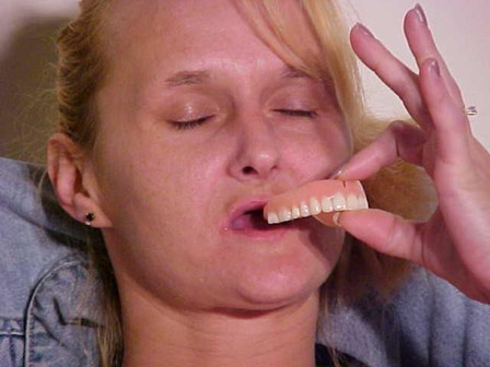 Lindsay messing around with her top denture! lolIn group - www.deviantart.com/toothlessla…