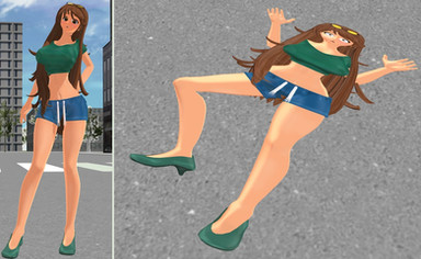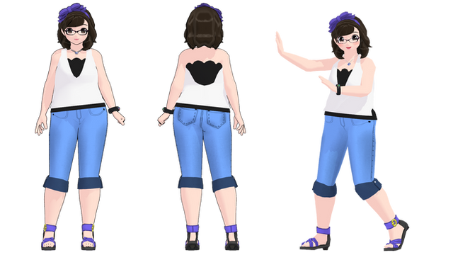 This time I flattened the model in PMX Editor before posing it in MMD.