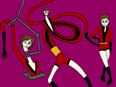 We were talking about some of our favorite obscure girls to squish a little while back and I brought mention to Madame Rouge from Teen Titans. I remember really loving this rubber villainess from the animated series, with all of her stretching and morphing. It made me really want to see her flattened too, since she never actually did it in the show (but I know it must be possible dangit!). Plus I've always wanted to see more rubber villainesses get attention. We have rubber good guys like Elastigirl, why not a rubber bad guy? XP