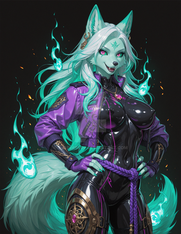 #adoptable #digitalart #adopt #furry #heterochromia #latex #navel #snout #tail #animal_ears #furrycharacter #aiart #looking_at_viewer #adoptablesopen #aqua_eyes #aqua_hair #adoptadoptable #small_breasts #white_fur #demon_tail #furryadoptable #furry_female #animal_nose #18pluscharacters