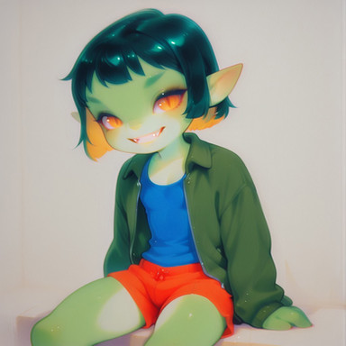 #digitalart #furry #adopt #adoptable #hat #indoors #overalls #shirt #sitting #wallpaper #white_hair #furrycharacter #aiart #looking_at_viewer #pointy_ears #short_hair #adoptablesopen #green_skin #adoptadoptable #striped_shirt #striped_clothes #furryadoptable #colored_skin #18pluscharacters