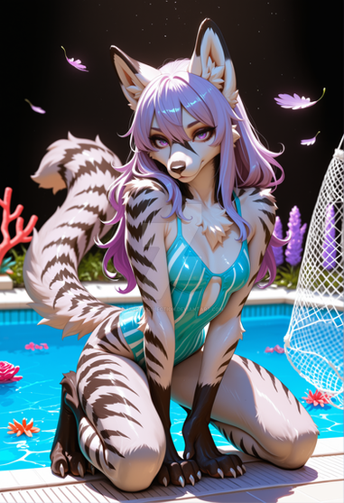 #digitalart #furry #adopt #adoptable #armor #blue_eyes #claws #feet #long_hair #reflection #sitting #soles #tail #toes #water #animal_ears #furrycharacter #aiart #looking_at_viewer #adoptablesopen #crossed_legs #adoptadoptable #furryadoptable #foot_focus #shiny_clothes #furry_female #colored_sclera #tail_ornament #18pluscharacters #body_fur
