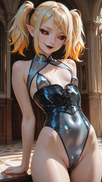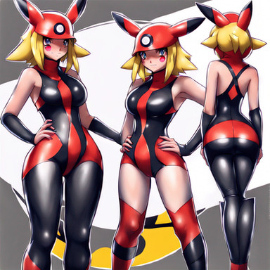 #digitalart #fanart #latex #blue_eyes #bodysuit #chain #long_hair #piercing #pokemon #nipple_piercing #aiart #blonde_hair #large_breasts #skin_tight #shiny_clothes #latex_bodysuit #crotch_zipper
