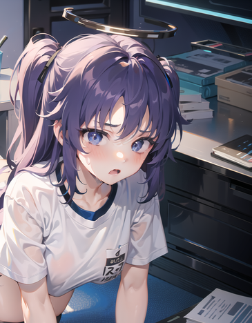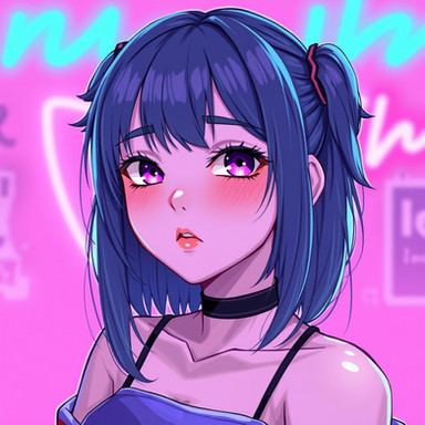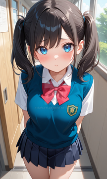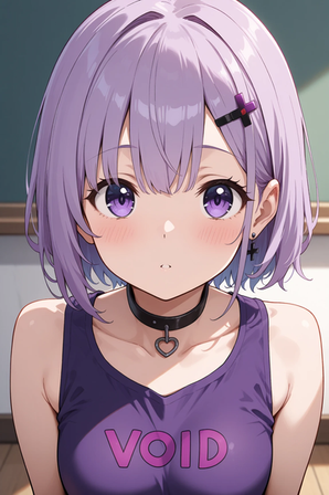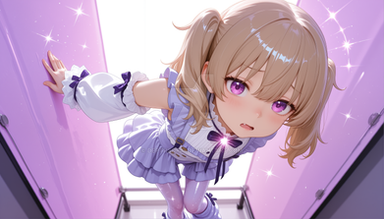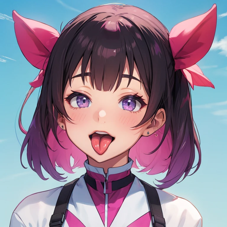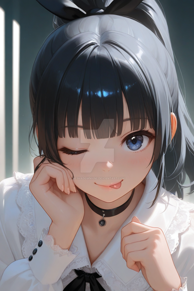 #digitalart #fanart #between #blue #blurry #bow #dress #eyes #hair #indoors #out #ponytail #purple #sleeveless #tongue #viewer #white #aiart #looking #side