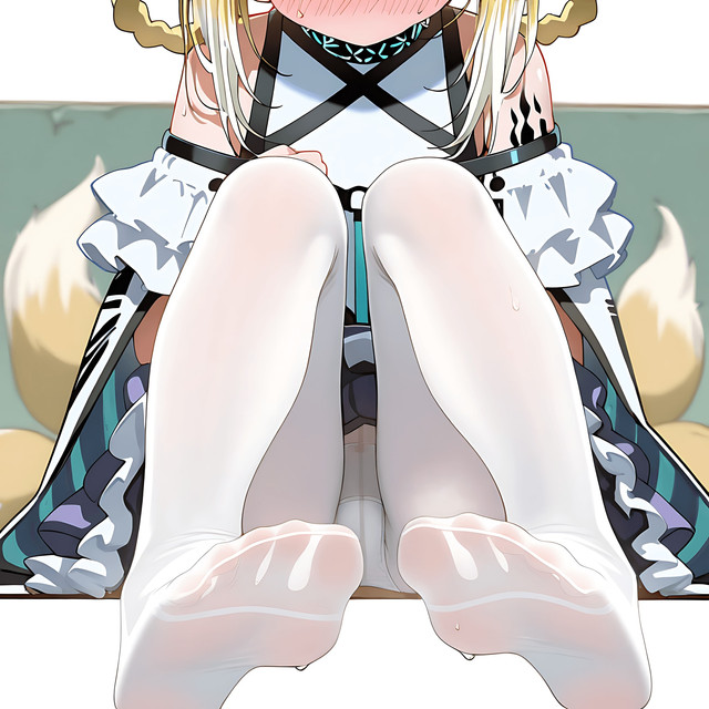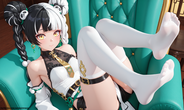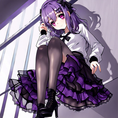 #digitalart #fanart #bed #bow #indoors #legs #long_hair #pantyhose #slippers #standing #twintails #aiart #wooden_floor #very_long_hair #hair_bow #shiny_clothes #lower_body #purple_bow #animal_slippers