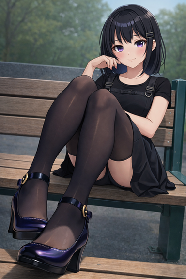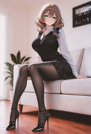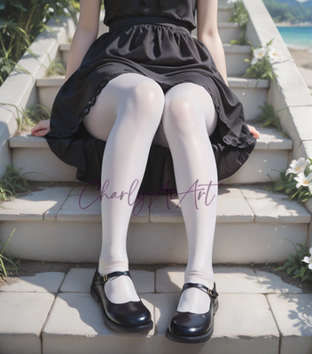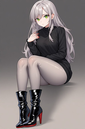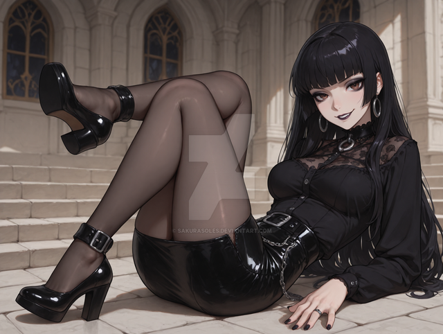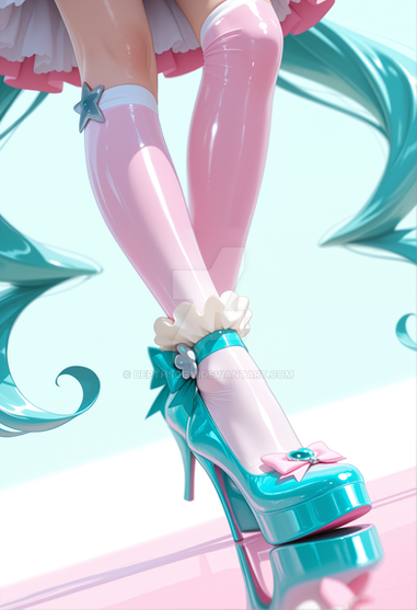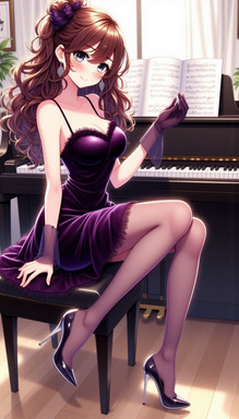 #dress #digitalart #fanart #indoors #instrument #legs #pantyhose #piano #sitting #black_dress #green_hair #aiart #grand_piano #mary_janes #lower_body #black_pantyhose #platform_footwear