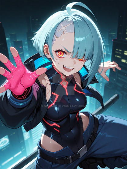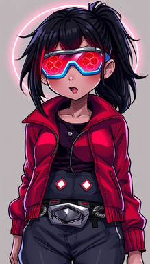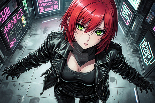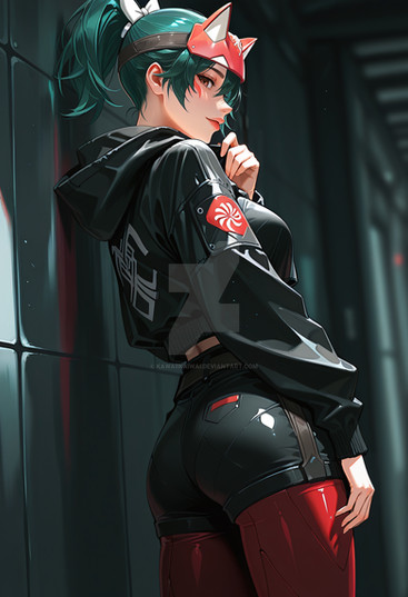 #videogamefanart #digitalart #fanart #belt #fishnets #indoors #jacket #necktie #pantyhose #pokemon #shirt #shorts #teeth #wallpaper #red_eyes #black_shirt #aiart #looking_at_viewer #red_jacket #aqua_hair #open_jacket #fishnet_pantyhose #clenched_teeth #white_necktie