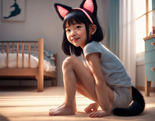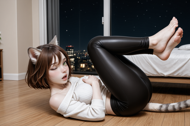#catgirl #digitalart #fanart #crowd #feet #full_body #pantyhose #soles #tail #tiptoes #toes #black_hair #animal_ears #aiart #looking_at_viewer #no_shoes #bare_arms #kemonofriends #solo_focus #from_side #extra_ears