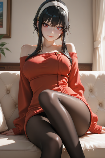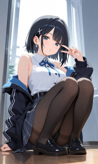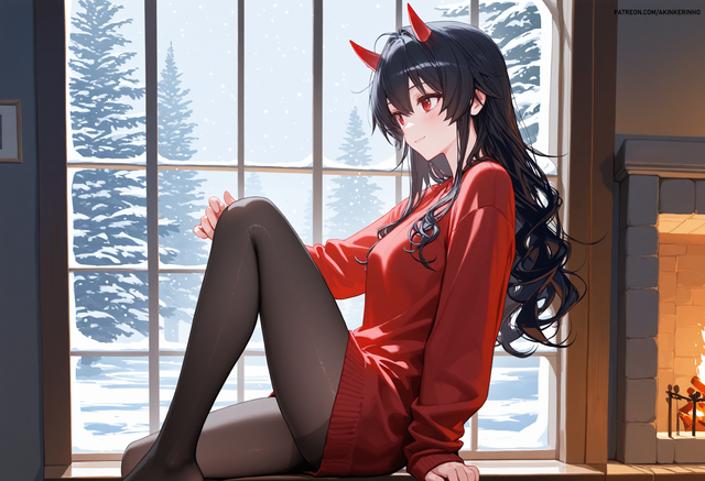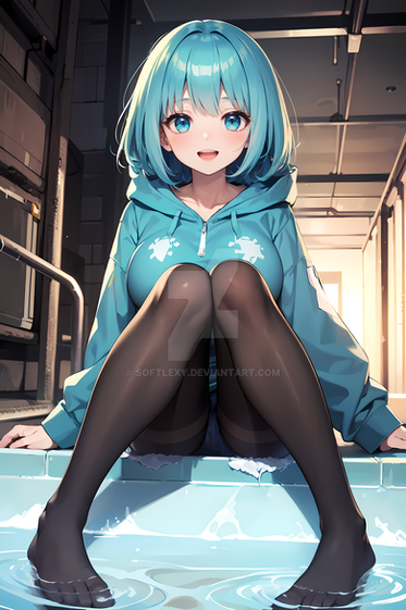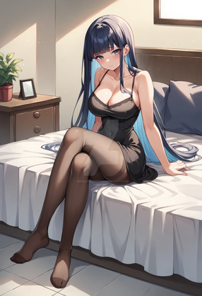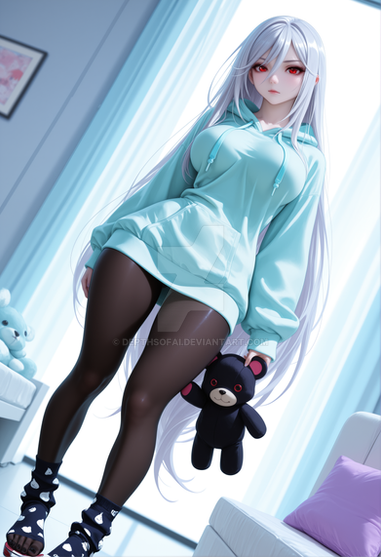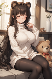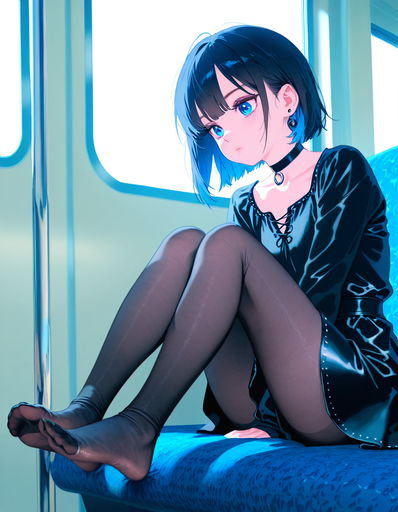 #digitalart #fanart #blue_eyes #dress #feet #long_hair #ostan #pantyhose #sitting #sweater #teddy_bear #black_hair #aiart #stuffed_toy #no_shoes #sweater_dress #off_shoulder #hair_ornament #off #shiny_clothes #knees_up #blue_sweater #black_pantyhose #x_hair_ornament #hugging_own_legs #shoulder_sweater #shiny_legwear