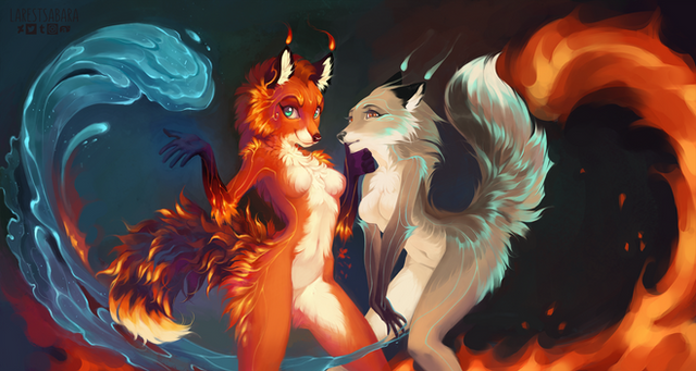 As you can see there'r my Coyotita and Wolfie doing some elemental contro stuff , well i made this on one of my daily practice. enjoy it n_nCharacters belongs to me.
