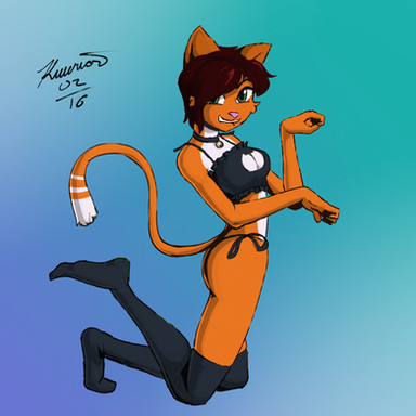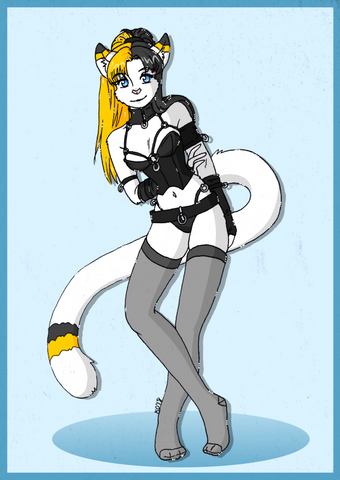 Dibujo de una hermosa felina presumiendo un atuendo :3 me encanta!El personaje no es mio n_n el arte si.