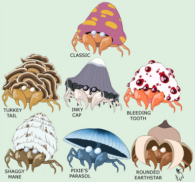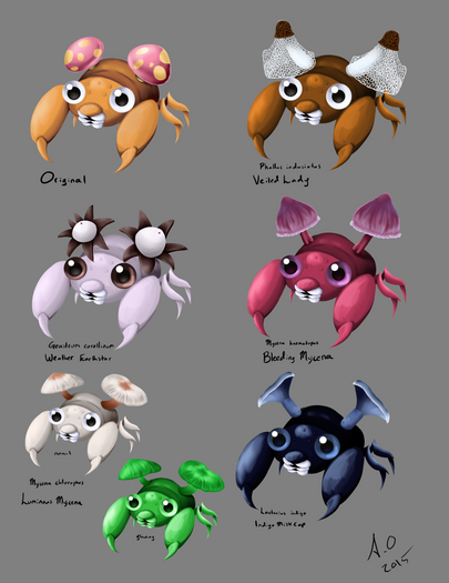 I really love parasect, it's too underrated. Lumbering mushroom brute. So here are some variations based on a few different fungi!Related content