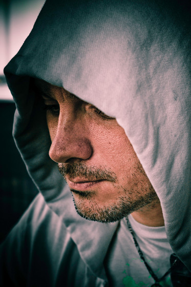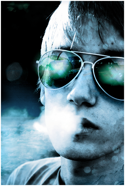 A selfy. The lightning bolt was NOT Photoshopped - it was faked in-camera using felt pipe cleaner, lit by a flash and reflected in the sunglasses. The only Photoshopping done to this image (besides the usual contrast/brightness, dodging/burning) was adding the blue tint to the sunglasses. It was one of those rare photos that just came together really well - the result was better than I had hoped for.~~~