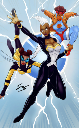 From the Line it is Drawn #200: "The theme is a revisit of one of my all-time favorite topics, Week 50′s “Super Team.” Make up your own super-team consisting of 1 Marvel character, 1 DC character, 1 character from an independent comic book company and 2 characters from any other form of fiction (novels, movies, whatever)." micQuestion suggested: "Storm, Vixen, Michonne, Promethea (Sophie Bangs), Yoruichi (Bleach)"See some process here: dereklangille.blogspot.ca/2014…