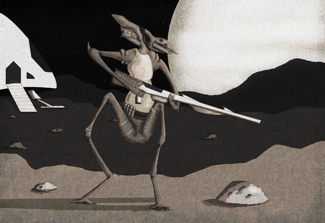 hahaha, I love the title, it say's it all the little guy is so screwed! I think the colors that you've chosen are excellent especially on the monster. it's funny how he's chewing on the shield, it's like both of them are thinking at that moment, "you have got to be kidding me!?" wonderfull job.