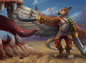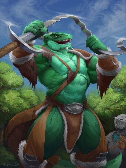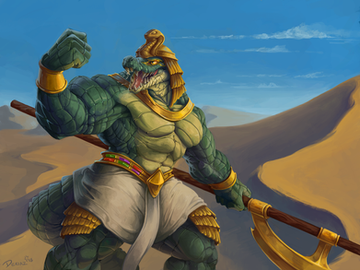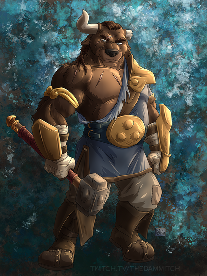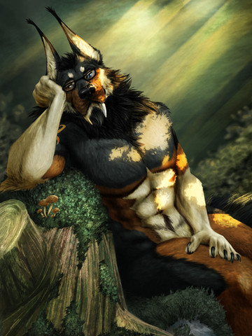 A piece for Talaran of FA! Taldir's already ahead of quota today, so a quick break in the afternoon sun seems like it's in order.I'm noticing, without realizing during thumbnailing, that I really like the "lounging, legs spread, resting" pose, huh. Whoops. Anyways, here's a big Charr resting! Tried to focus on speeding up some of the background, and rendering characters a little quicker, plus spending a bit more time on both the sketch AND the final adjustment layers. I think the result went well! Especially the final tweaks -- normally I just do one adjustment, but this time I went in with some gradient splashes to try and kick up some of the ambient color. c: