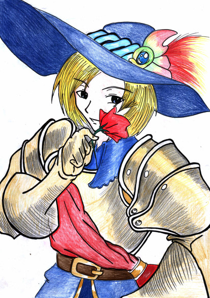 Very nicely done. The lines are perfect and the character's pose is very natural. The colouring is...superb! Overall: Beautiful work.