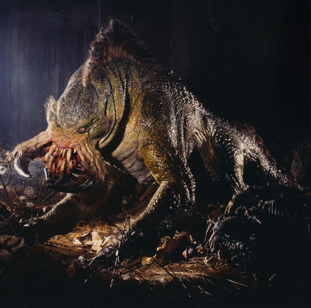 Rancors are large semi-sentient reptilian carnivores native to the planet Dathomir (although also present on Felucia and Pandora). Rancors were and are often seen as mindless, violent creatures due to their extensive use as fighters across the galaxy.