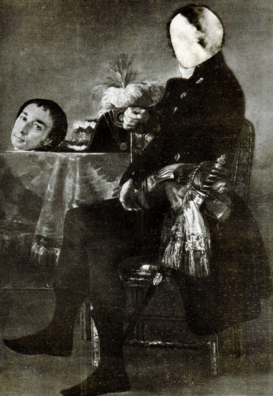 It's interesting how much more anxious the man with the smaller pipe looks when his face is identical to the other man's. But the smaller pipe, the distorted body, the trailing position create a different feeling.